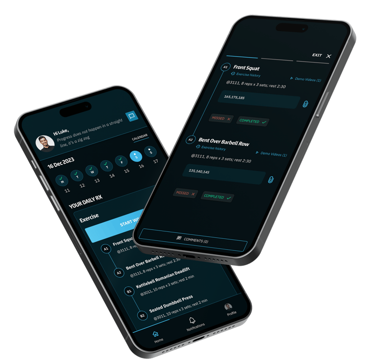 Access the Coach RX app for 24/7 support, progress monitoring, and workout logging. Stay connected with real-time performance insights.